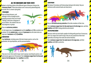 - Statistics for dinosaurs and NPCs.