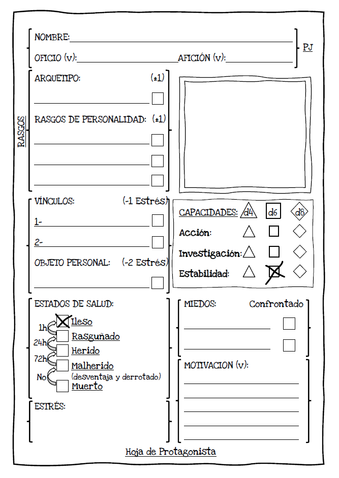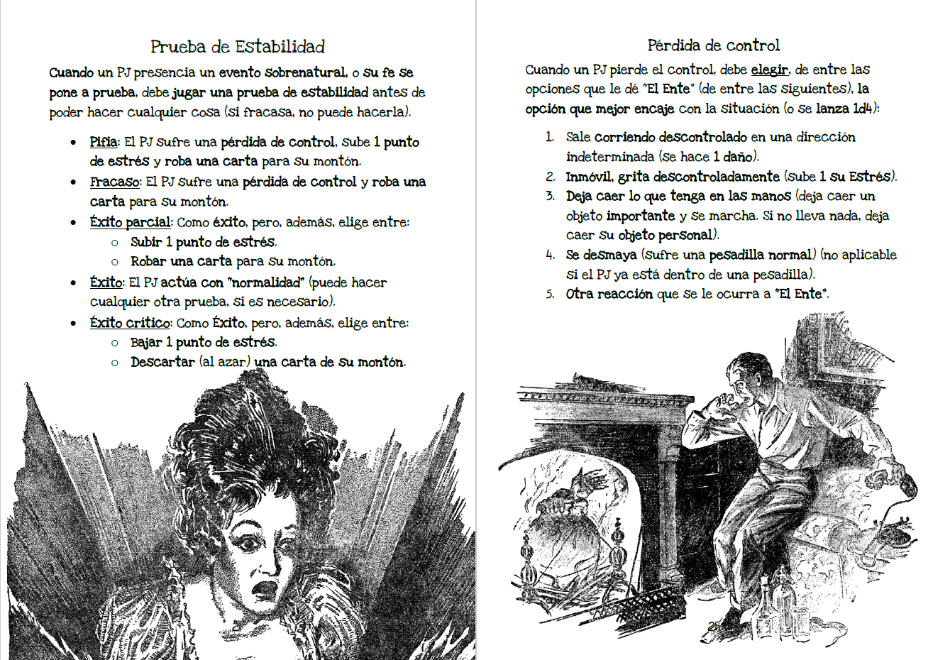 Como juego, ofrece un sistema de juego que permite jugar (sin complicarse mucho) todo tipo de situaciones mundanas básicas (pruebas de acción o investigación) y eventos sobrenaturales (prueba de estabilidad). También ofrece las herramientas necesarias para interpretar una posesión demoníaca, una dominación o una abducción desde el punto de vista del personaje atrapado y desde el punto de vista de quienes quieren ayudarlo. Dentro de estas mecánicas, se incluye cómo jugar una pesadilla.